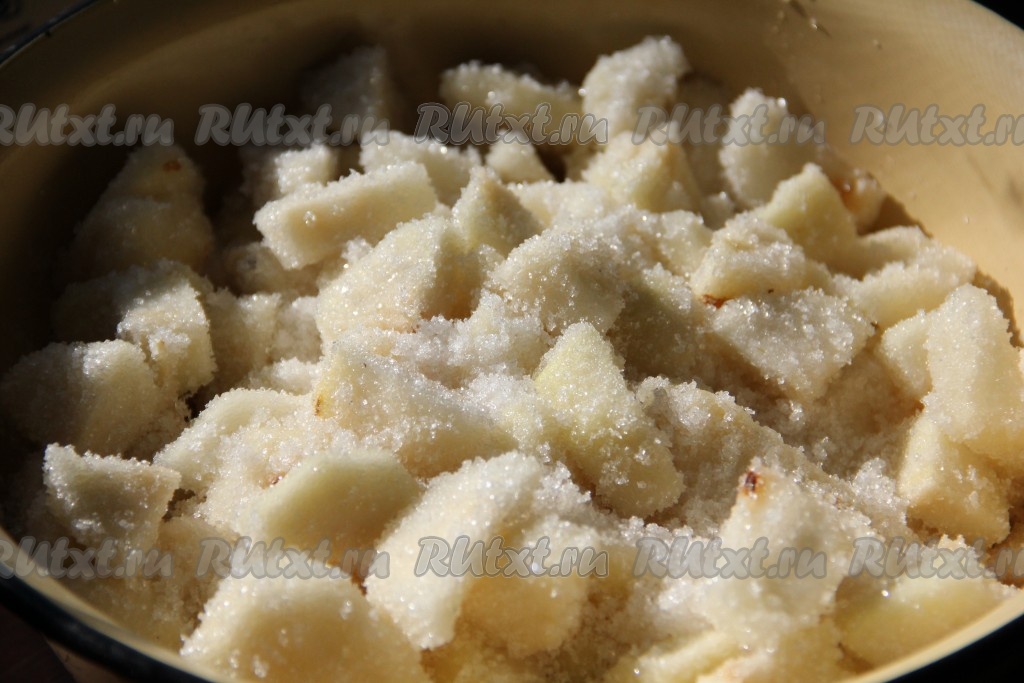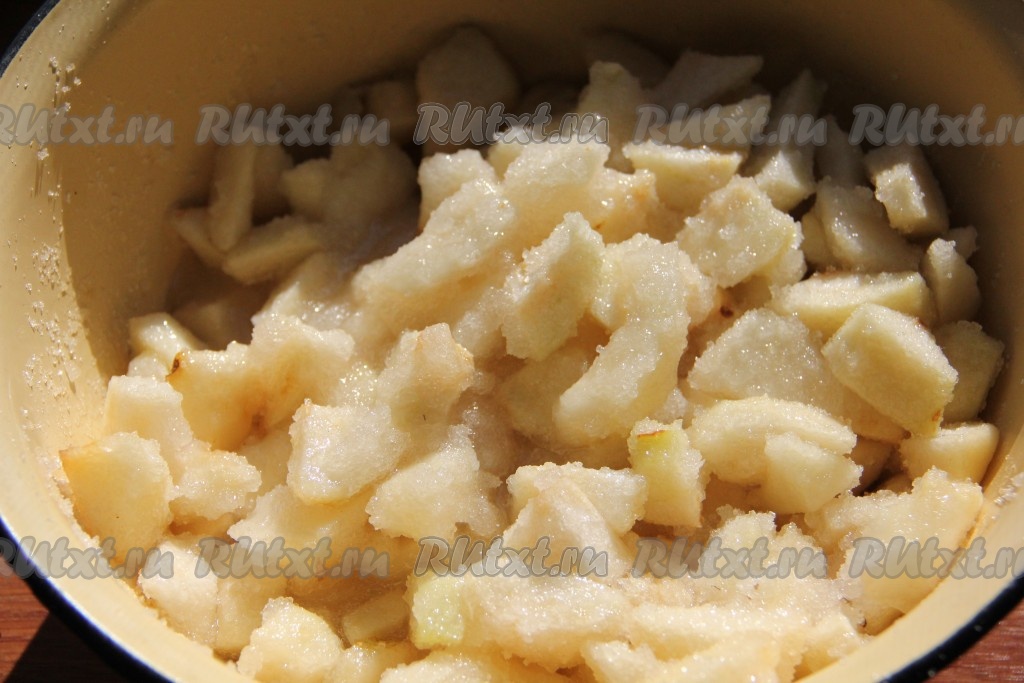 Груши очистить от кожуры, нарезать средними кусочками, засыпать сахаром и оставить на 1 час.