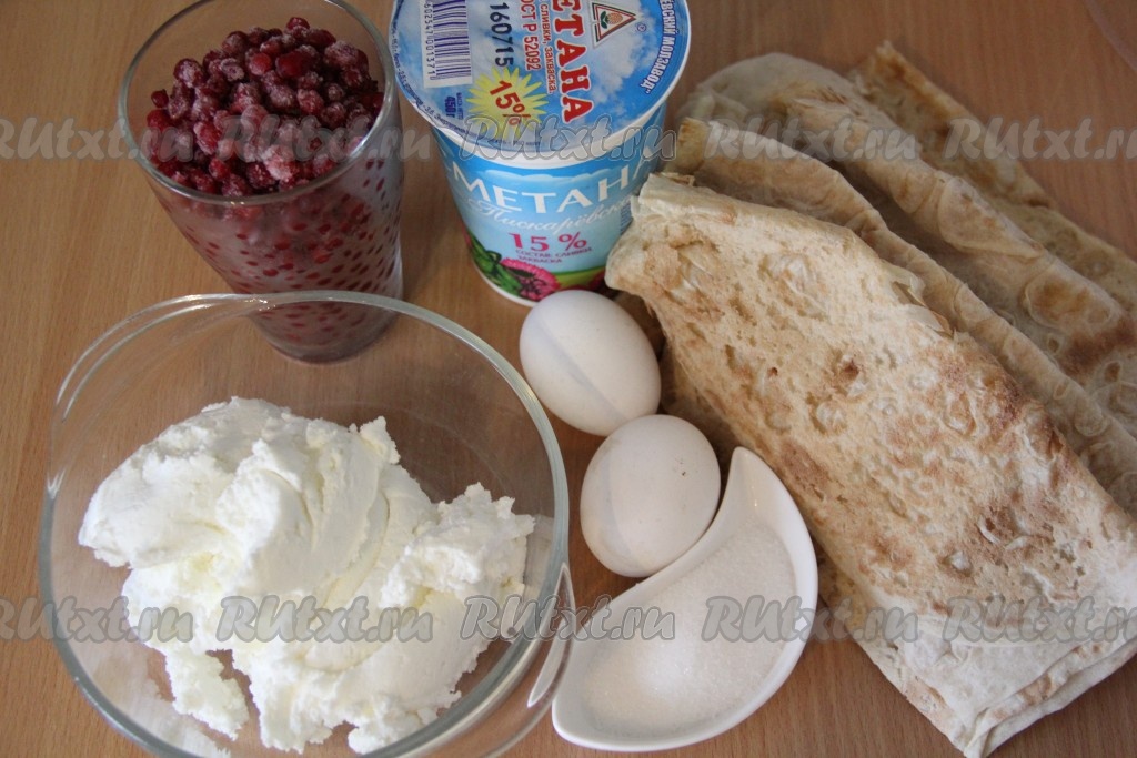Для приготовления лаваша с творогом в духовке нам потребуется:
