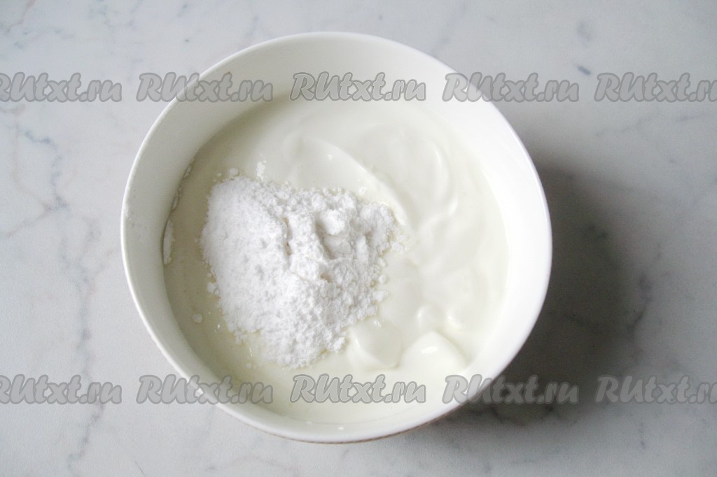 Сметану выложить в миску, добавить сахарную пудру. Аккуратно перемешать.