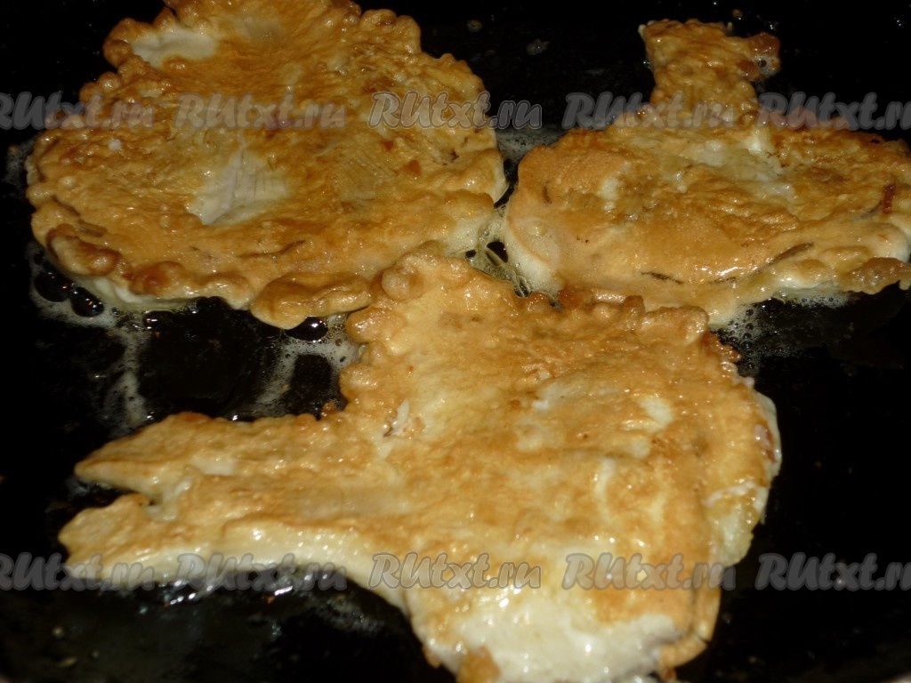 Каждую отбивную из вешенки обмакнуть в кляр с двух сторон и выложить на разогретую с растительным маслом сковороду.