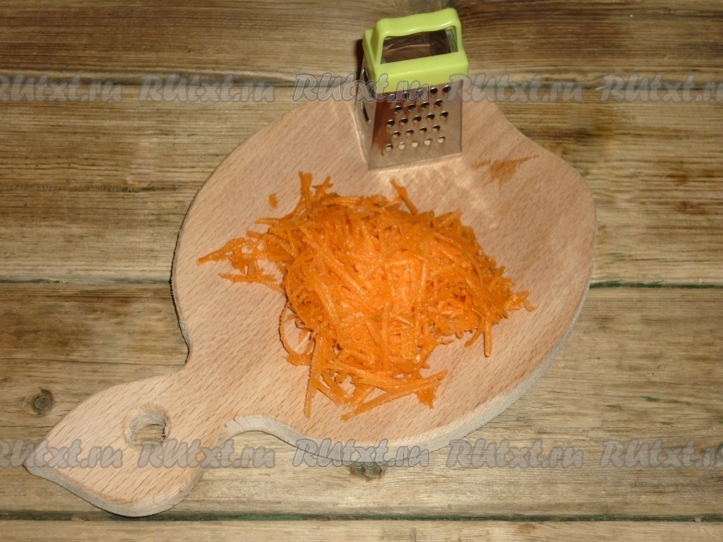 Очистить морковь и натереть на мелкой тёрке.