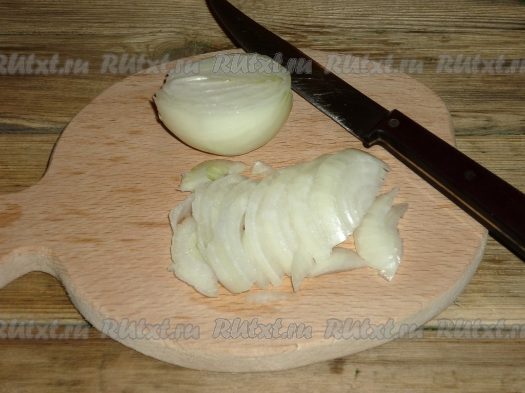 Очистить лук и нарезать полукольцами.