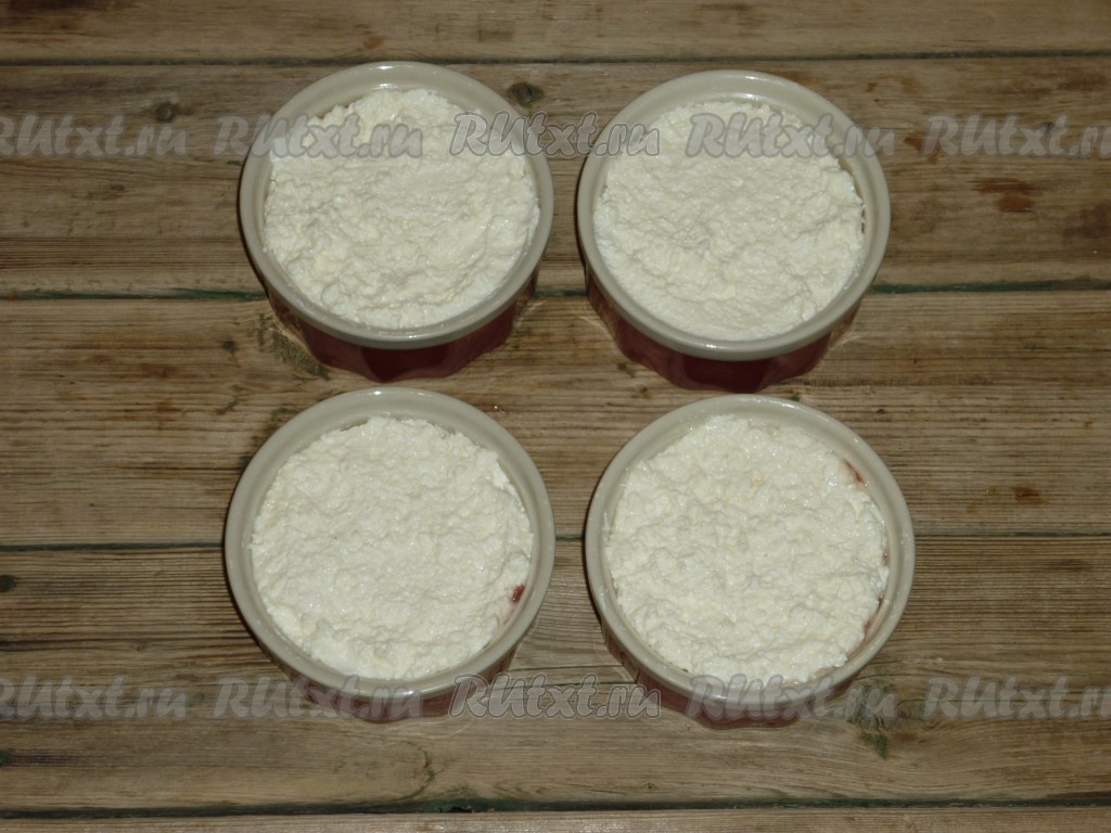 Творожные запеканки с малиновым вареньем выпекать 40-45 минут.