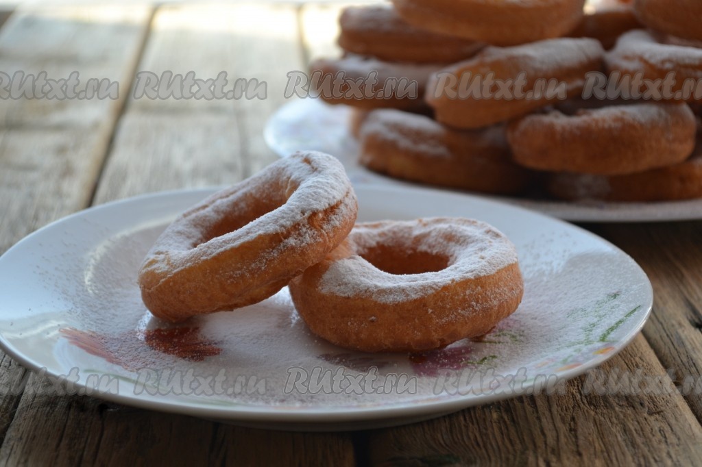 Готовые пончики выкладываем на салфетку, чтобы убрать лишний жир. Затем перекладываем на тарелку, даём немного остыть и посыпаем сахарной пудрой. Постепенно жарим во фритюре все творожные пончики.