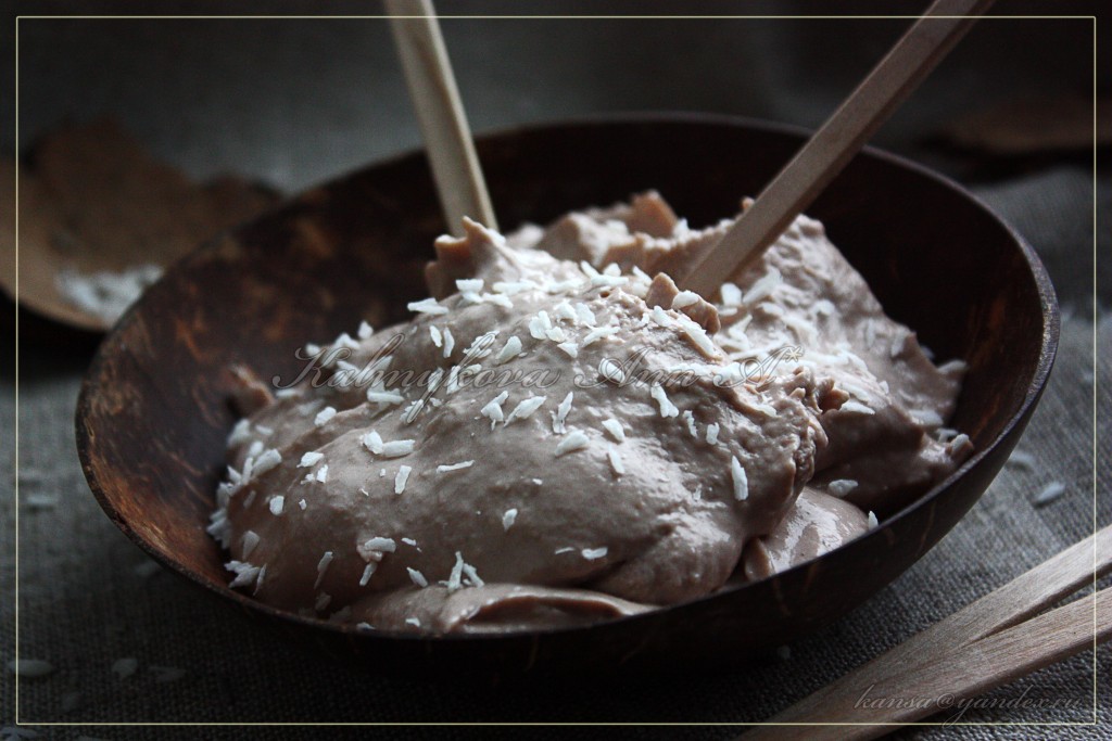 Перед подачей протеиновое мороженое можно посыпать кокосовой стружкой.