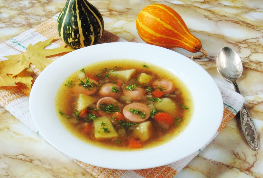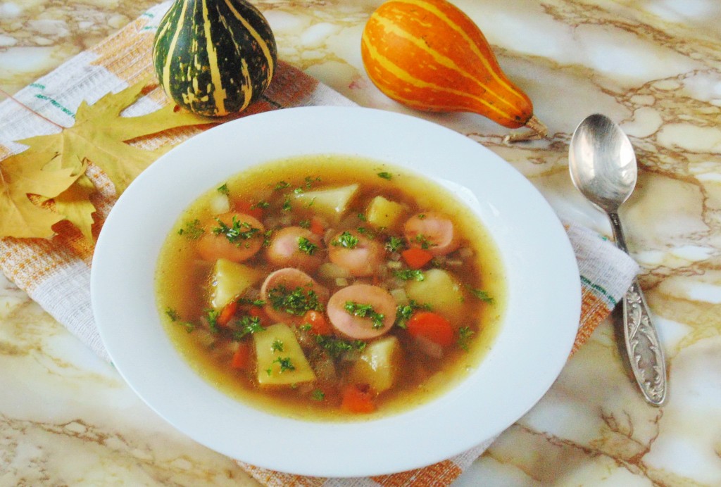 Чечевица - продукт богатый белком, не накапливающий в себе нитраты и другие вредные вещества, содержащий массу витаминов и микроэлементов необходимых организму. Поэтому следует чаще включать её в рацион и готовить разные блюда. Предлагаю рецепт супа из зеленой чечевицы с сосисками. Простой в приготовлении, сытный и вкусный. Готовится он относительно быстро и не требует больших материальных затрат.