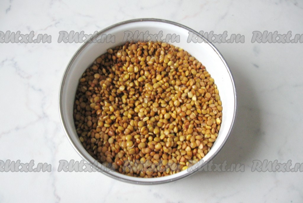 Чечевицу хорошо помыть и залить холодной водой на 4-6 часов, можно на ночь.