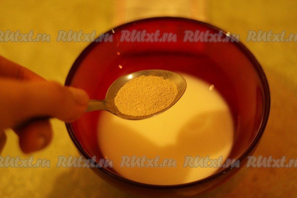 Дрожжи развести в теплом молоке.