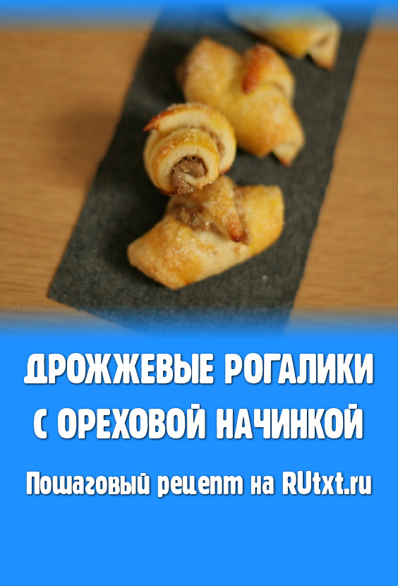 Дать подойти в течение 20 минут. Затем отправить наши дрожжевые рогалики с ореховой начинкой в духовку выпекаться 15-20 минут при температуре 180 градусов. Нежный и вкусный десерт к чаю готов!
