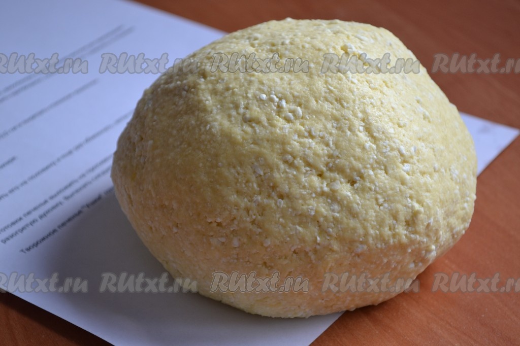 Сливочное масло растопить (я растопила в микроволновке), дать ему немного остыть. В объёмной ёмкости смешать творог, сахар, растопленное (не горячее) сливочное масло и яйцо. Массу очень хорошо растереть при помощи вилки. Частями всыпая муку, замесить мягкое, не липнущее к ладоням тесто. Завернуть тесто в пищевую плёнку и поместить в холодильник на 30 минут.