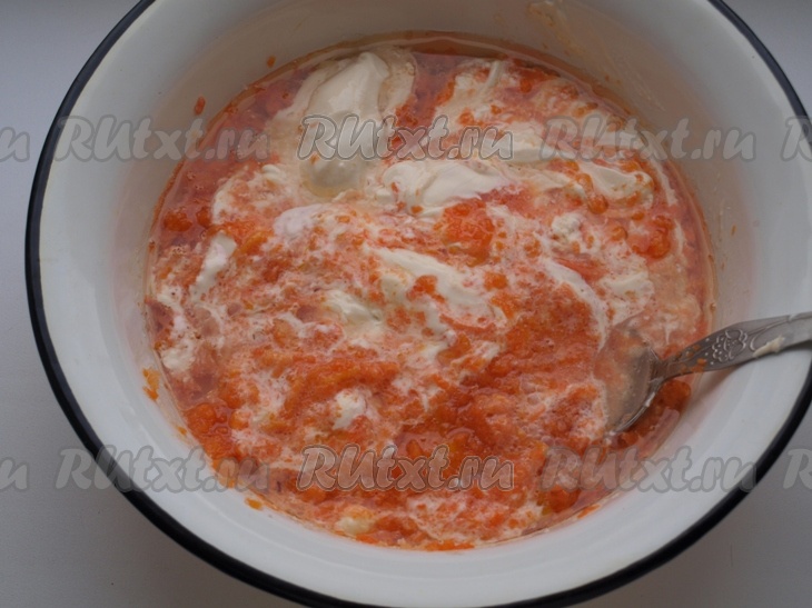 Частями всыпать муку, каждый раз вмешивая её в тесто столовой ложкой. Как только тыквенное тесто для кексов станет по консистенции напоминать сметану средней густоты, значит больше муку добавлять не нужно. Главное - ориентироваться на густоту теста, а не на количество муки.