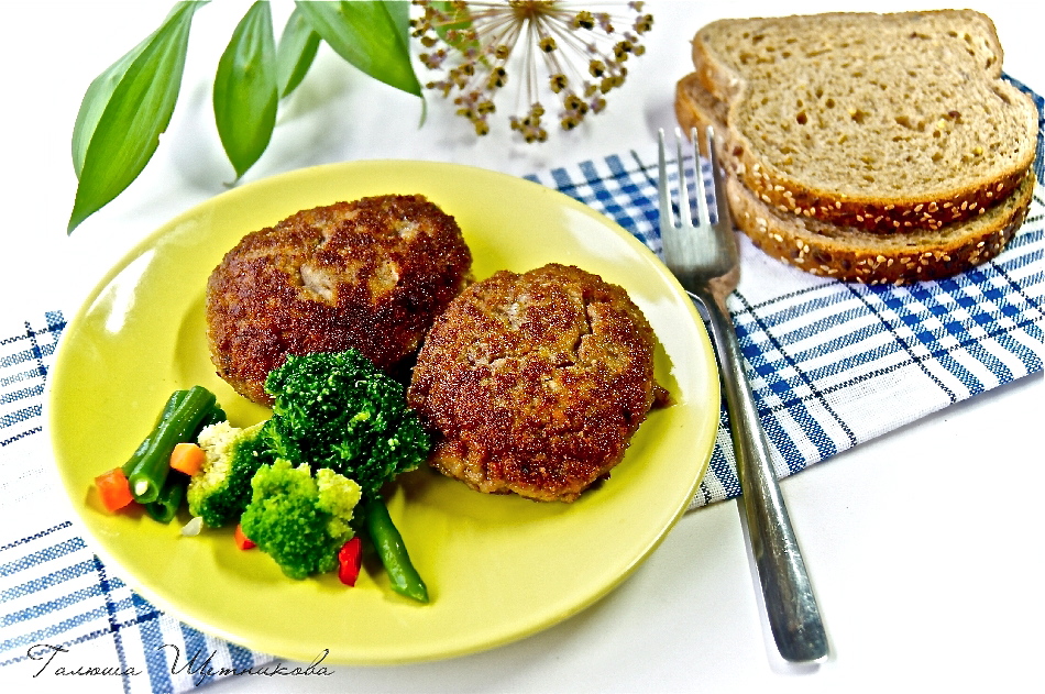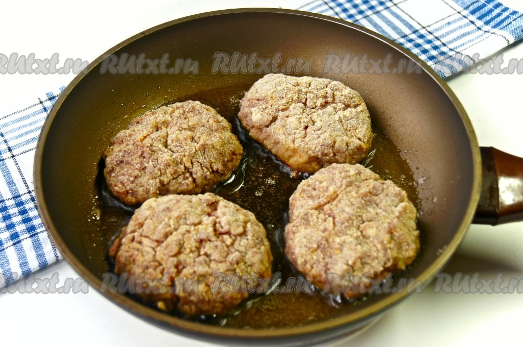 Как только котлеты зарумянятся, нужно перевернуть их, прикрыть крышкой и жарить на слабом огне минут 15.