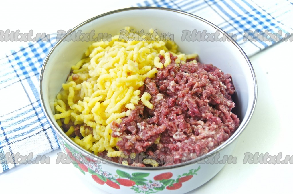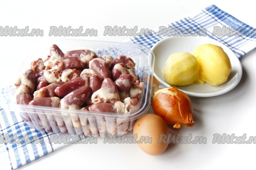 Лук и вареную картошку очистить. Сердечки вымыть, обсушить и прокрутить через мясорубку с картофелем и репчатым луком.
