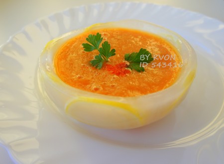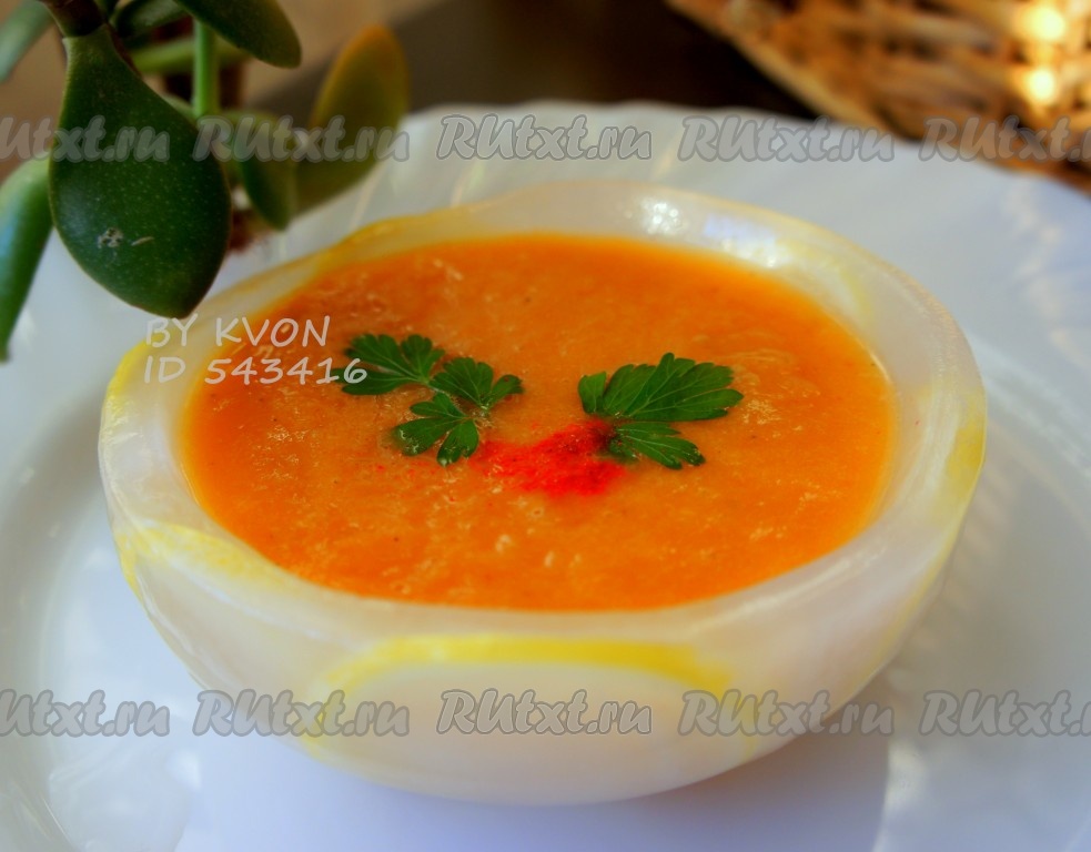 Подавать овощной суп охлажденным с зеленью!