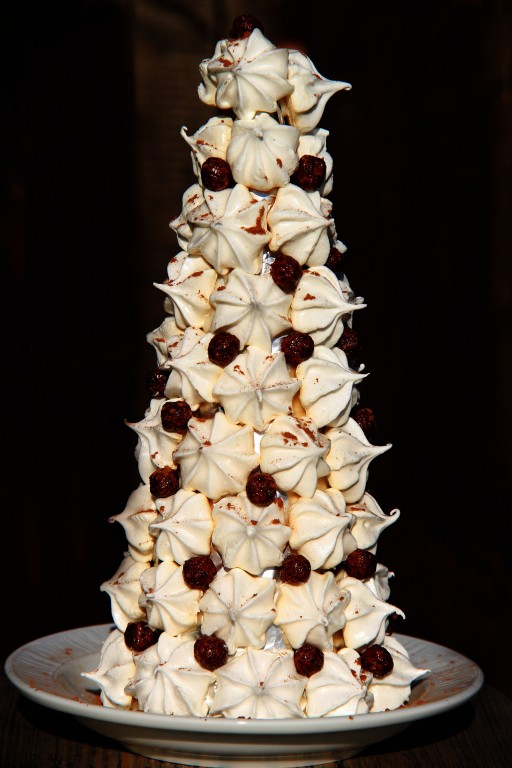 Я украсила ёлку шоколадными шариками, можно взять мармелад, конфетки, кусочки сухофруктов и т.д. Шоколадные шарики легко поместились между безе и их не пришлось крепить. И последний штрих, я посыпала ёлочку тёмным какао. Вот такая вкусная ёлочка из безе получилась. Не сомневаюсь, она украсит любой новогодний стол.