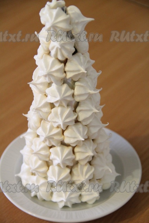 В преддверии Нового года хочу предложить Вашему вниманию очень красивую и вкусную ёлочку, приготовленную из безе. Такую ёлку можно поставить на новогодний стол и когда придёт время чаепития, можно будет полакомиться нежными и вкусными безешками. Приготовить такую ёлочку довольно просто, размер и декор выбирайте сами.
