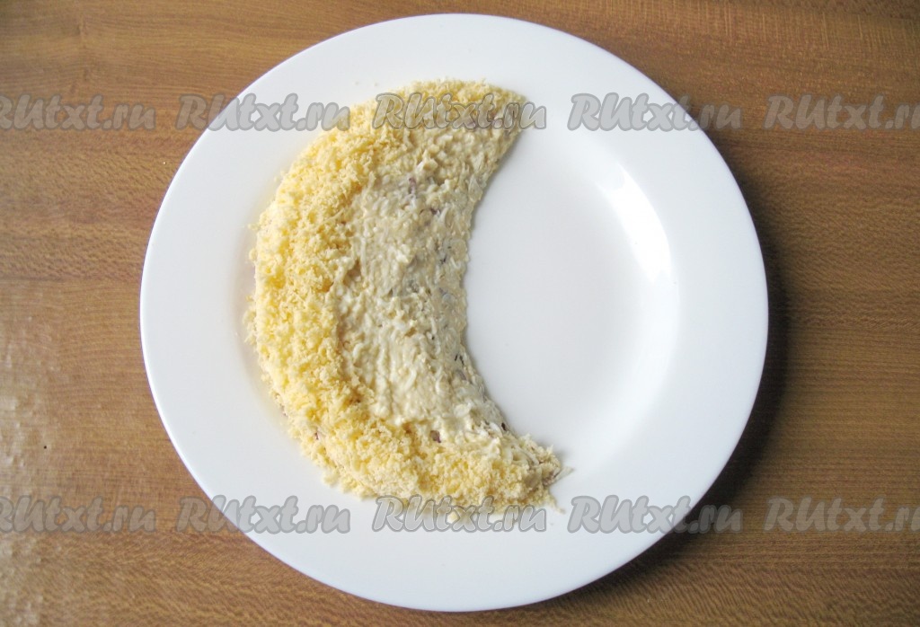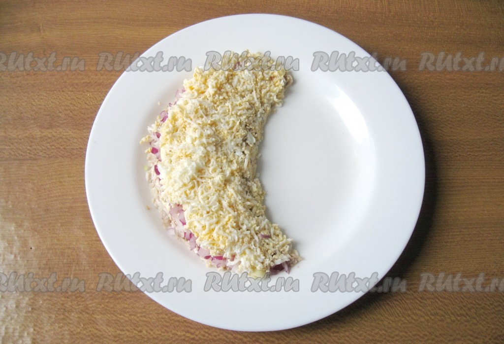 Слой яиц также смажьте майонезом.