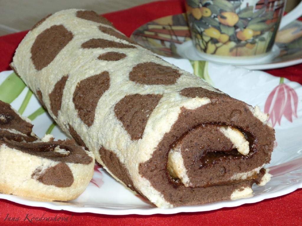 Хочу предложить рецепт вкусного и внешне необычного бисквитного рулета "Жираф". Готовится он очень просто. Хорошо сворачивается. В качестве начинки можно использовать повидло. Такая выпечка станет приятным дополнением к молоку, чаю или кофе.