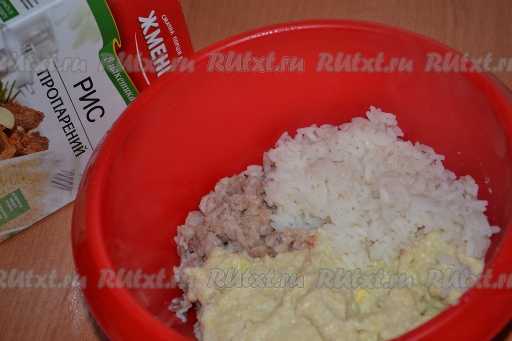 Соединить измельченные лук с яблоками, яйца и сельдь, добавить отваренный до готовности рис. Все перемешать и начинка для праздничной закуски готова.