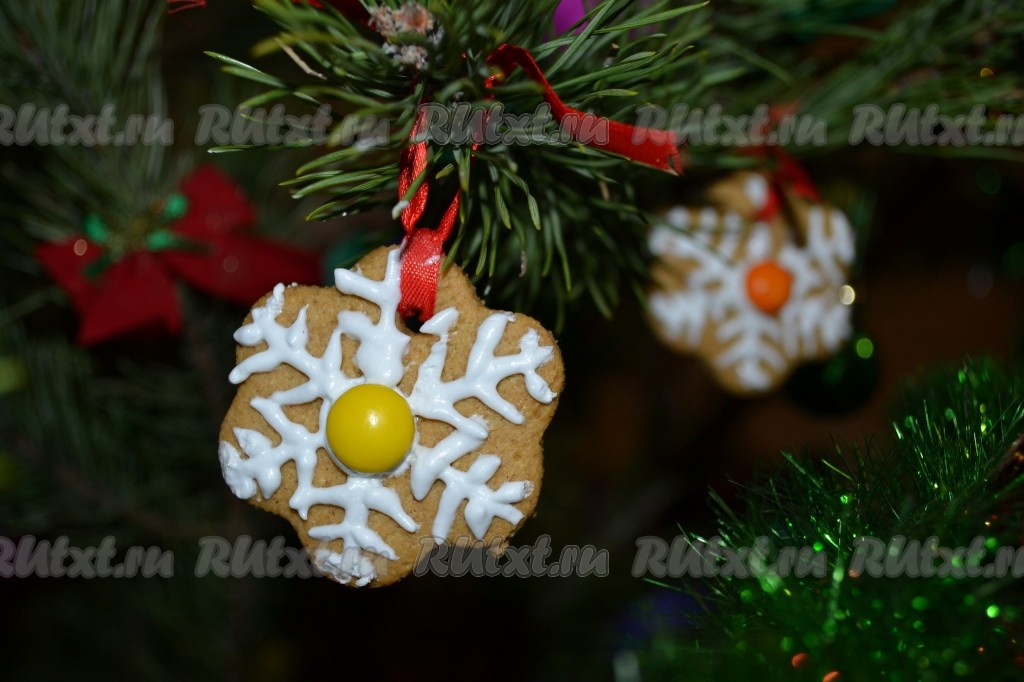 Кроме человечков я еще сделала печенье в форме снежинок и повесила его на ёлку.