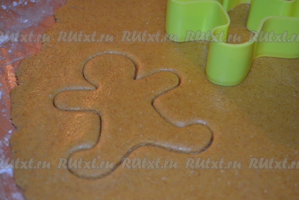 Немного припорошить стол мукой и раскатать тесто в пласт. С помощью формочек вырезать фигурки.