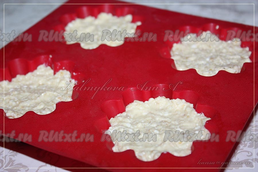 Полученную массу разложить в силиконовые формочки поставить в микроволновую печь на максимальную мощность на 3 минуты. Затем, не открывая дверцу микроволновки, оставить запеканки "отдохнуть" минуты на 2, затем поставить ещё минуты на 1,5 на ту же мощность.