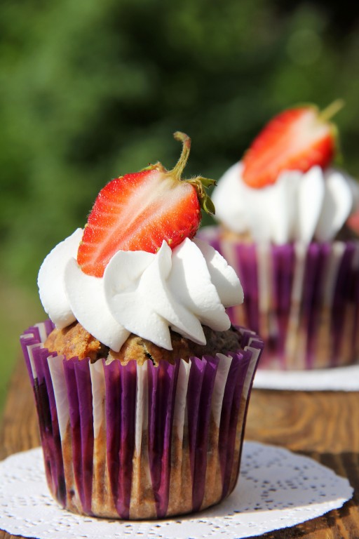 На верхушку сливочно-творожного крема можно положить кусочки ягод или фруктов. Вот такие вкусные и красивые капкейки получились.