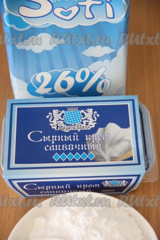 Подготовить продукты для приготовления сливочно-творожного крема. Я взяла сливки на растительных маслах.