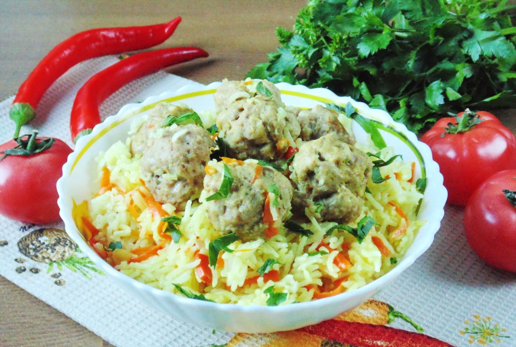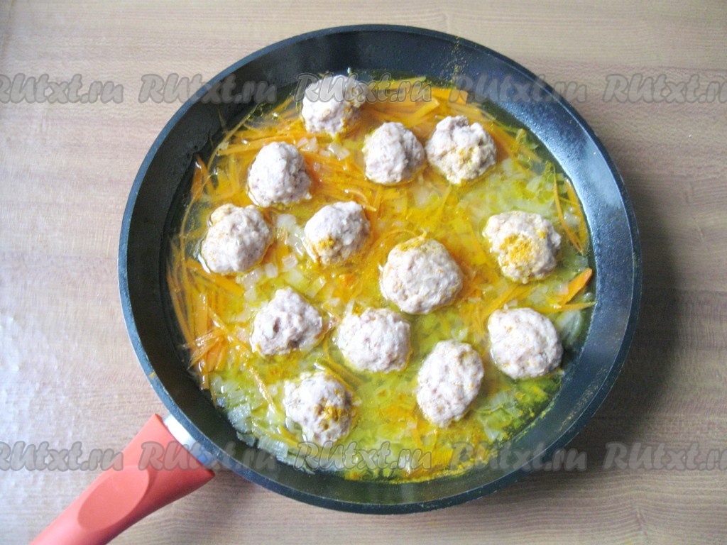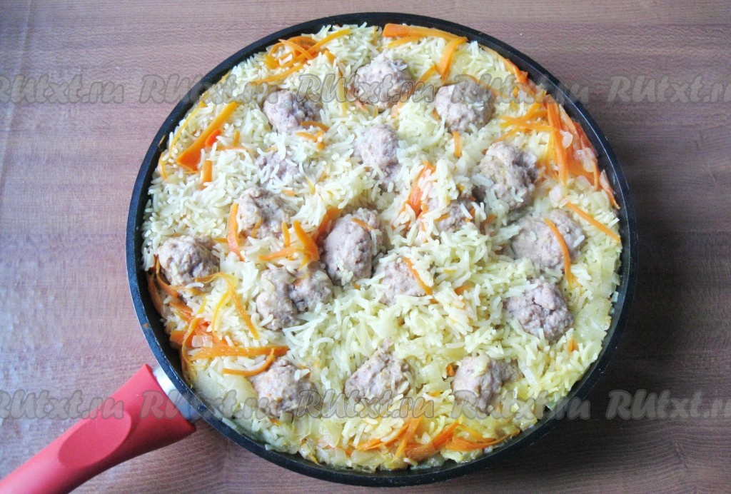 Рис с фрикадельками на сковороде