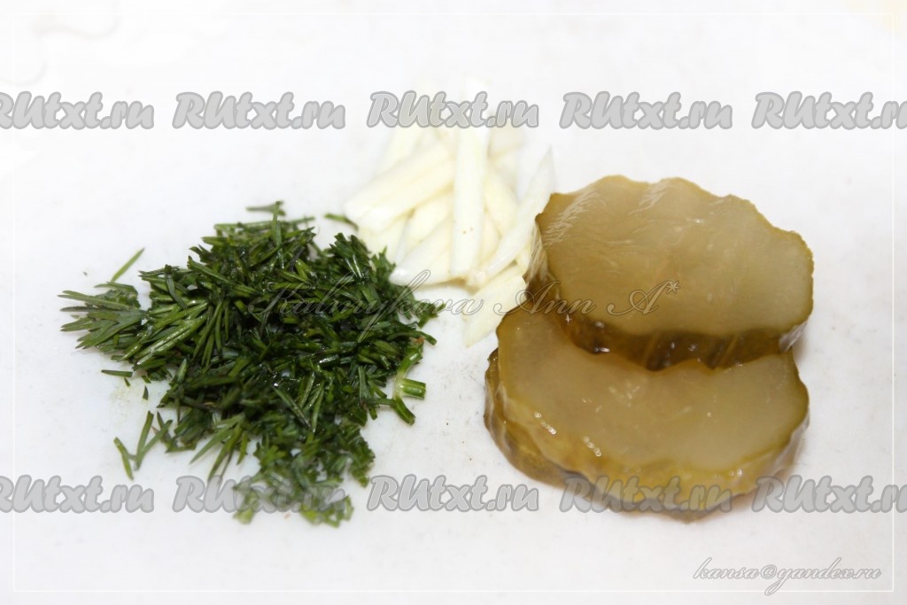 огурцы соленые / маринованные (по вкусу и наличию в доме).