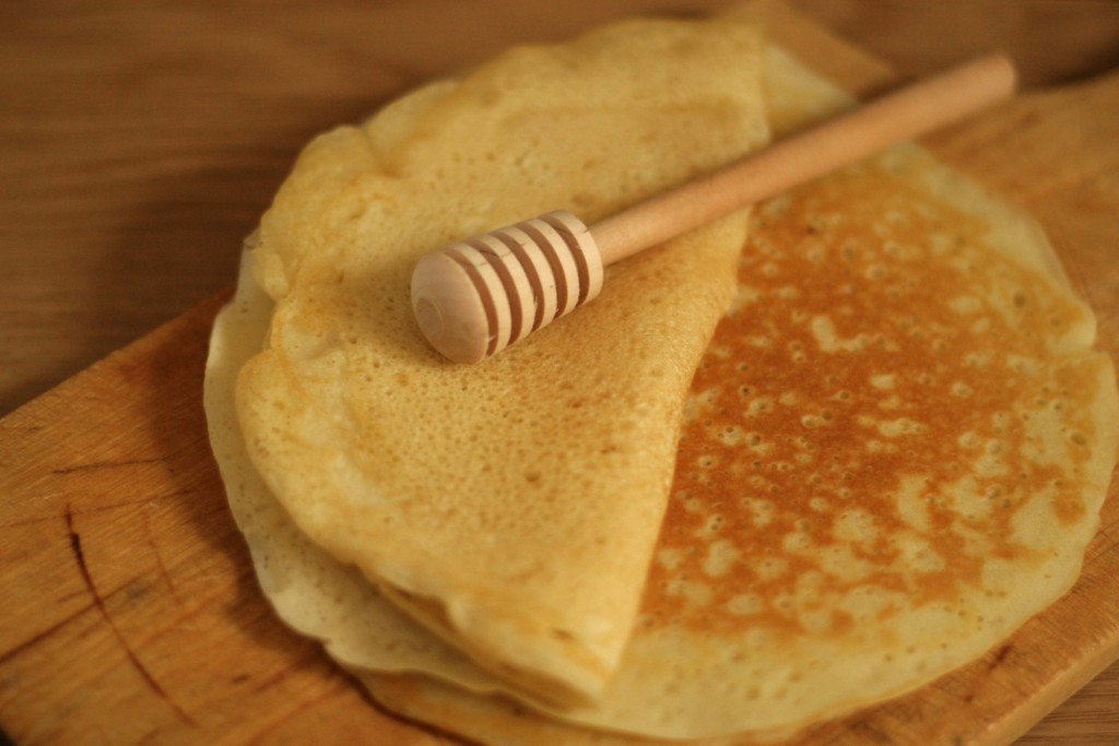 Вкусно кушать блинчики просто с мёдом или вареньем.