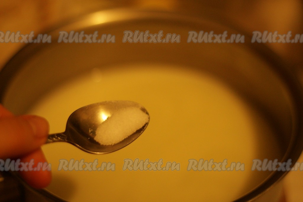 Сыворотку нагреваем до 50 градусов (по ощущениям сыворотка должны быть не сильно горячая, Вы можете держать в ней палец), солим.