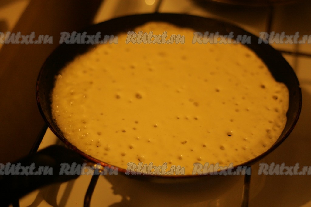Добавляем масло и перемешиваем. Даем постоять блинному тесту около часа. Сковородку смазываем маслом. Наливаем тесто, жарим наши блины на сыворотке с двух сторон до румяной корочки.