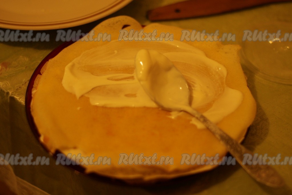 А я сделала вот такой блинный тортик. Каждый блинчик промазала сметаной, смешанной с сахарной пудрой и ванилином.