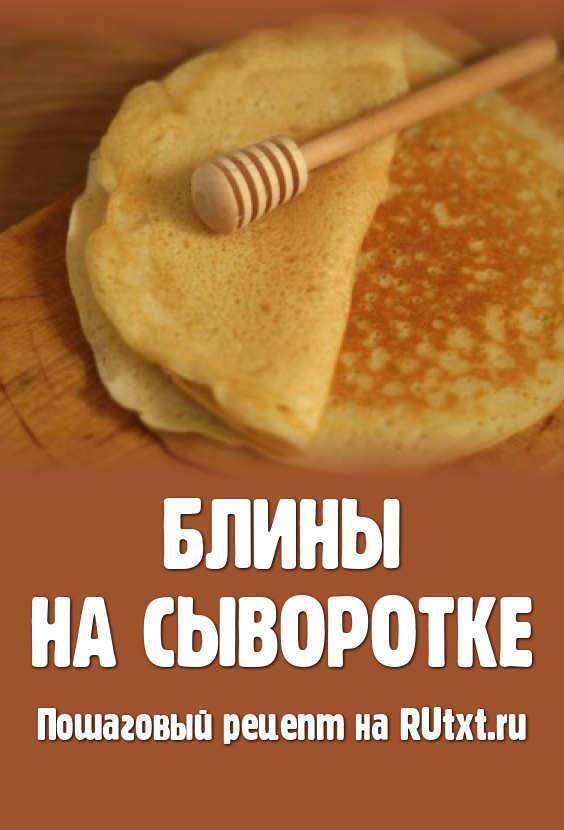 Блины на сыворотке получаются нежными, правда, чуть потолще, чем привычные блинчики. Но в их толщине таится изюминка, ведь блины получаются более вкусными. Такие блинчики хороши для приготовления блинных тортов. Очень вкусно промазать их творожным или сметанным кремом (как это сделала я). Плюс этого рецепта в том, что в тесте не используются яйца.