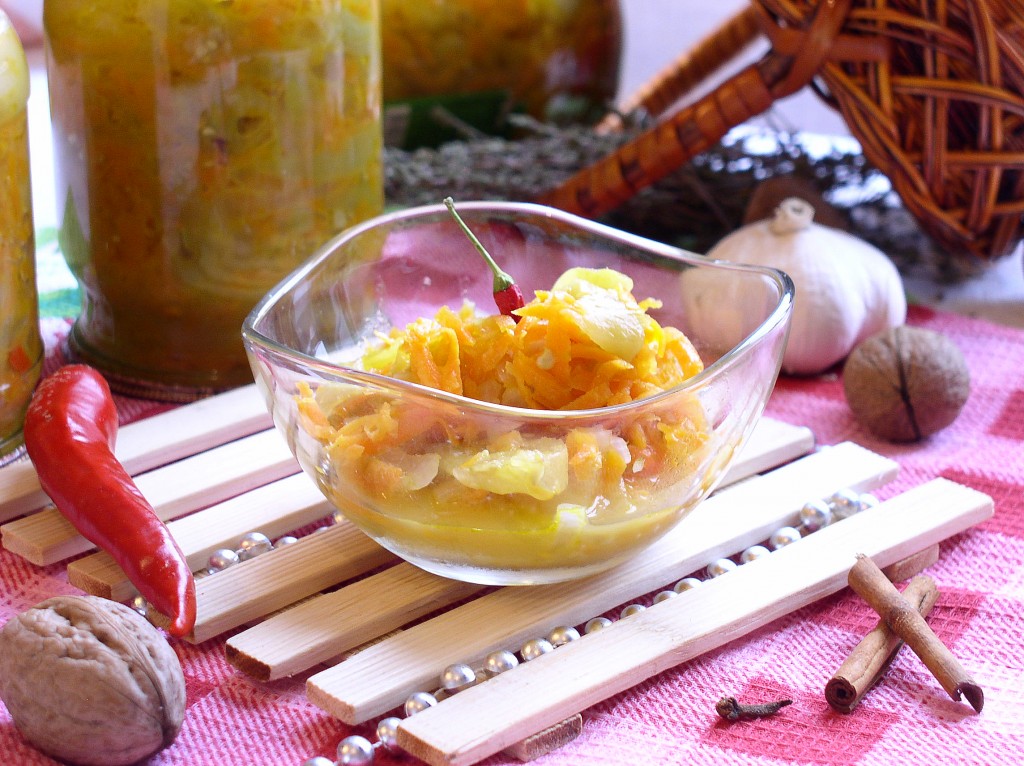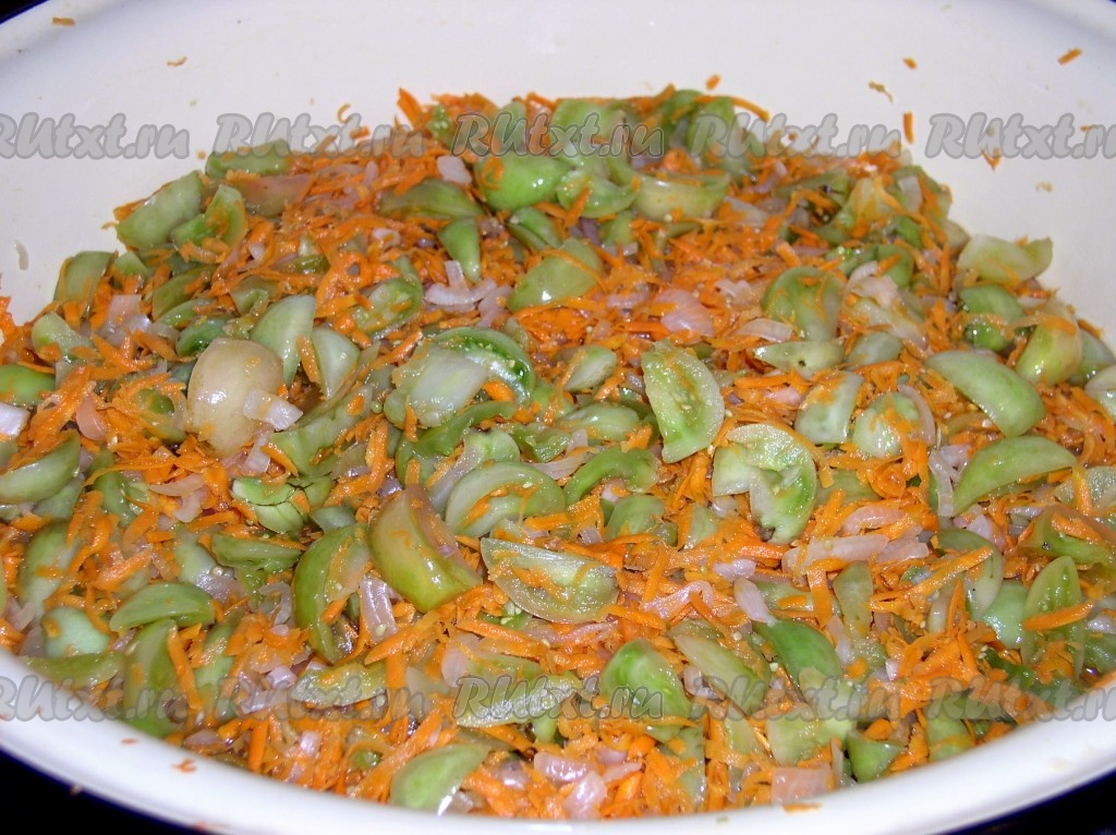 Для приготовления салата из зеленых помидоров на зиму потребуется: