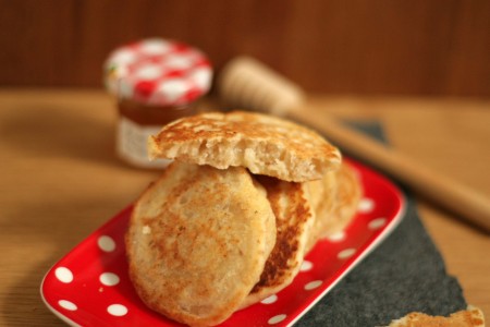 Оладушки из овсяной каши готовы, их лучше подавать с медом и сметаной!