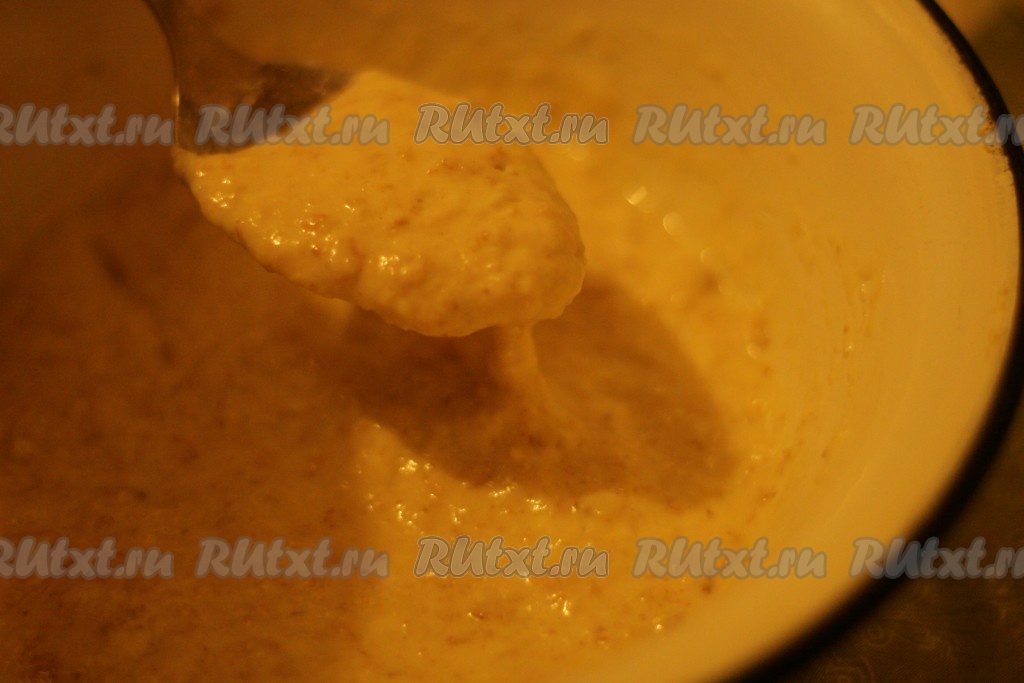 Добавить масло. Хорошенько перемешать. Тесто для оладьев из овсяной каши получается, как густая сметана.