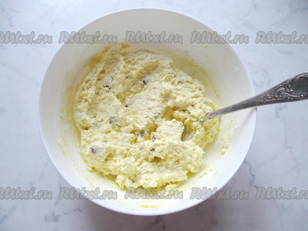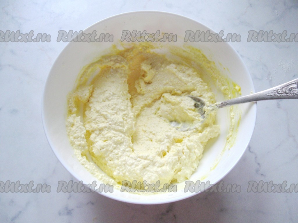 Полученную творожную смесь тщательно перемешать до получения однородной массы.