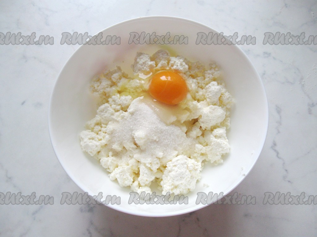 Яйцо и соль тоже добавить к творогу и сахару.