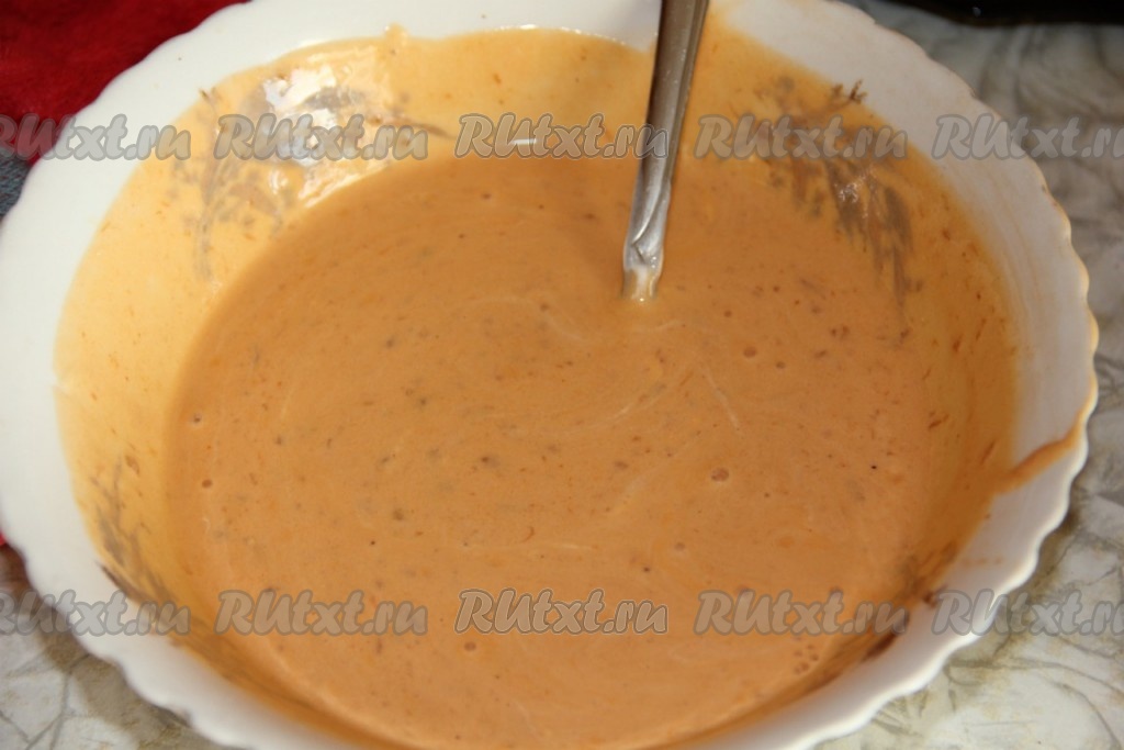 В теплой воде разводим грибной соус (или грибные кубики). Добавляем сметану, перемешиваем и пробуем на соль (обычно соусы достаточно соленые). Если Вы не добавляете грибной соус, то просто соедините тёплую воды, сметану, соль и специи, тщательно перемешайте.