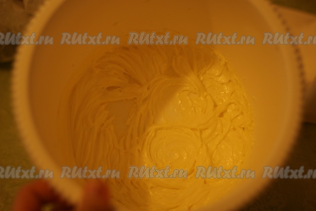 Масло взбиваем миксером с 1/3 частью сахарной пудры на средней скорости, до пышности.