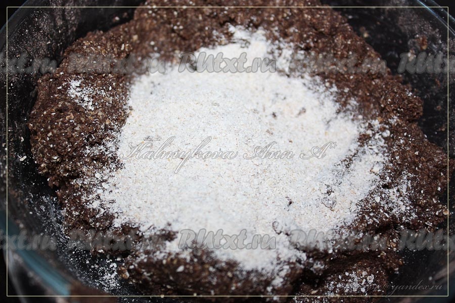 В полученную горячую массу добавить муку, смешанную с какао, и замесить тесто. Если тесто получится слишком густым, можно добавить воду, доведя тесто до нужной консистенции.