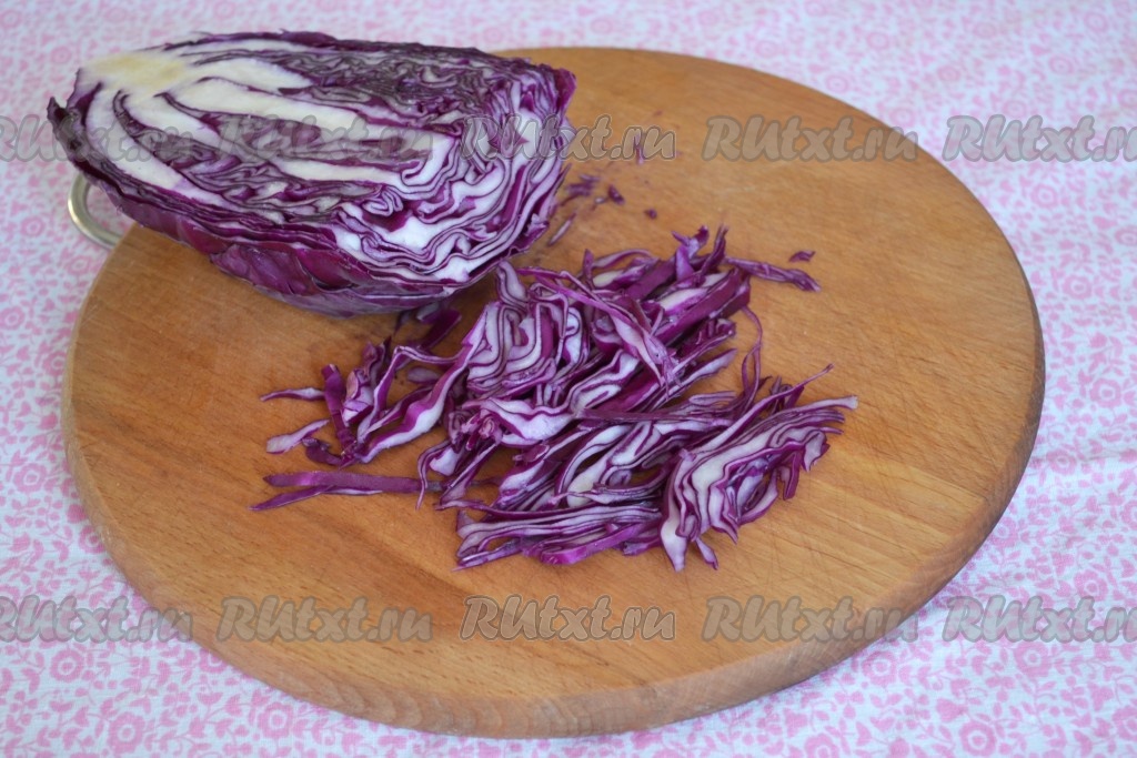 Подготовим все необходимые продукты для приготовления салата из краснокочанной капусты.