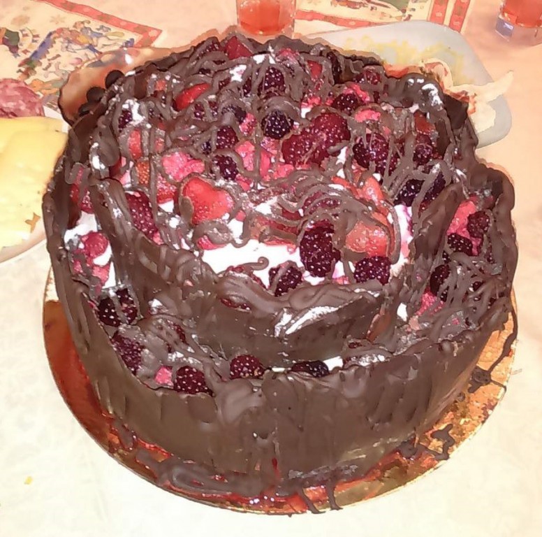 Торт по Вашему рецепту вызвал аплодисменты моих гостей!))) Кто-то спрашивал, сколько времени уходит на его приготовление, могу сказать, что много. Но результат стоит усилий) Коржи воздушные, нежные. Нижний поднялся так, что его можно было бы разрезать на три части. Переживала, что крем со сливками будет жирноват для нас (любим больше сметанный, творожный, заварной), но он хорошо лег между коржами и вся жирность ушла. Когда дошло до шоколадного бортика, подумала, зачем я его решила делать?))) Было трудоемко, но во все получилось. Спасибо Вам и радуйте нас еще такими же прекрасными рецептами!)))