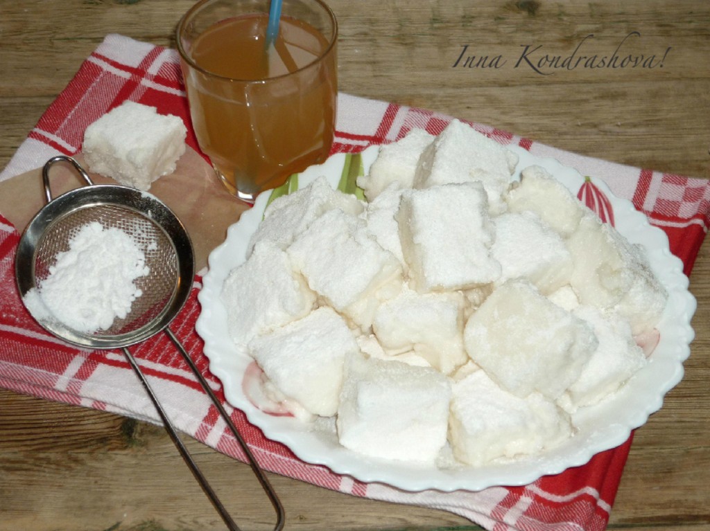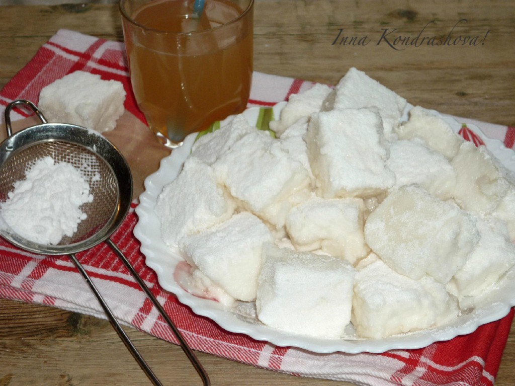 Маршмеллоу - это вкусные, воздушные конфетки, которые очень просто сделать в домашних условиях. Готовятся они по этому рецепту из самых доступных продуктов с добавлением желатина. Я делала белые маршмеллоу с ванильным вкусом, но можно экспериментировать, добавив цедру лимона или апельсина. Цвет можно изменить с помощью натуральных красителей. Приготовьте сладости по этому рецепту и, я уверена, ваши родные будут в восторге.