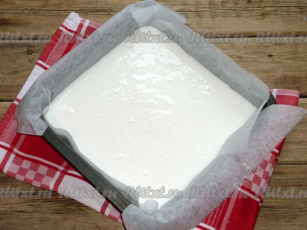 Форму застелить пергаментной бумагой и вылить массу, разровнять. Оставить застывать при комнатной температуре на 2-3 часа.