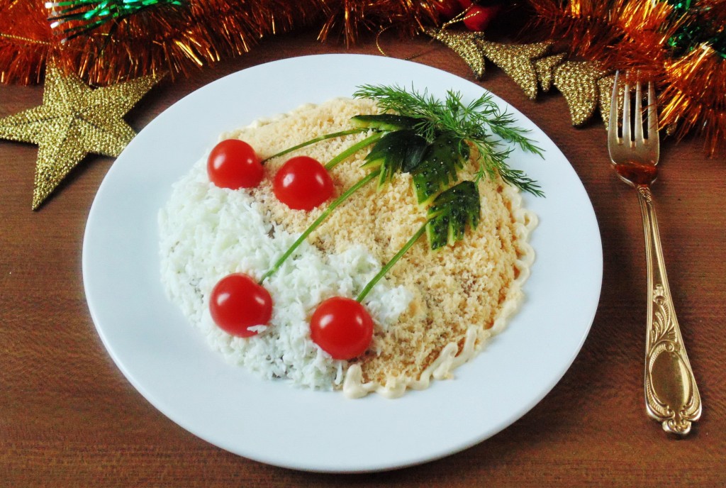 • Предлагаю на праздничный новогодний стол оформить всеми любимый салат "Мимоза" в виде ...