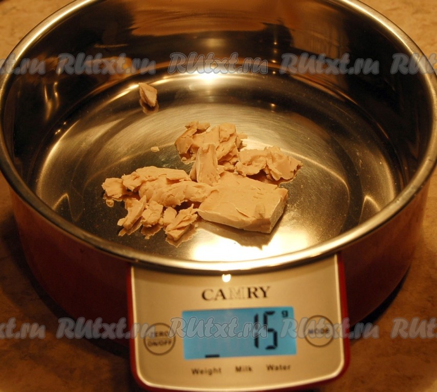Для приготовления теста взвесим свежие дрожжи.
