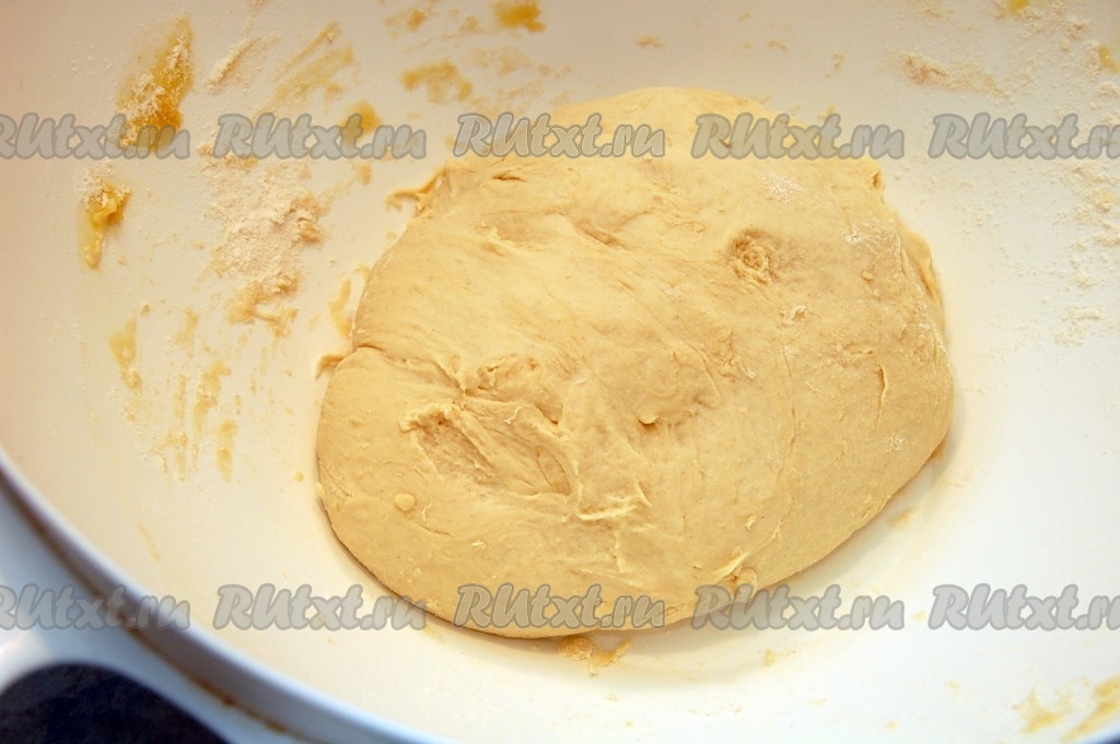 Через полтора часа (или больше) достаём тесто, увеличившееся в объёме в 2-3 раза. Тесто на живых дрожжах для приготовления булочек готово. Я решила испечь булочки с несладкой начинкой (начинку, конечно, можете подобрать по своему вкусу) и булочки без начинки в виде лепёшек.